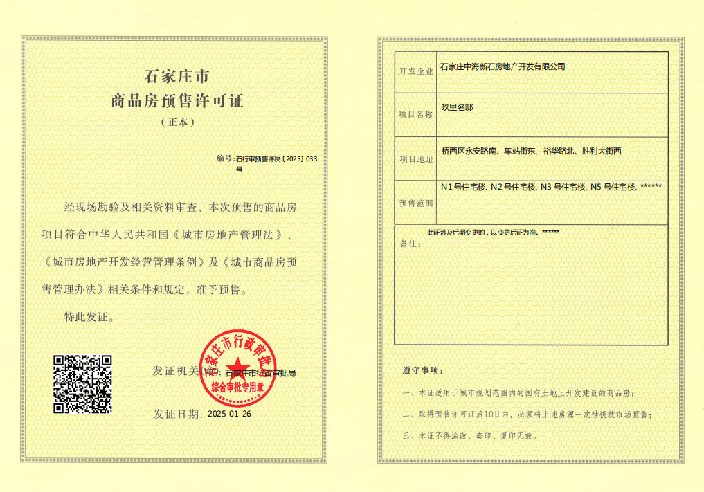 石行审预售许决【2025】033号 查看图片 | 2025-01-26 | 北区3#楼、北区5#楼、北区1#楼、北区2#楼 |