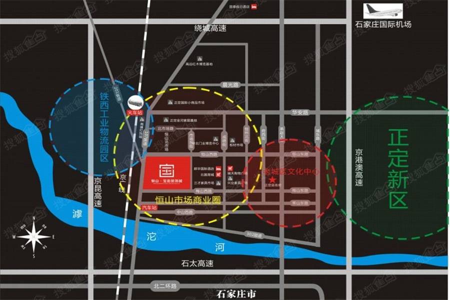 项目周围商业氛围浓厚:三才家具市场、华北门业博览中心、金河家具基地、正定国际小商品市场、高远红木城等,是政府规划的沿107市场走廊。项目紧邻正定汽车站和107国道,距正定火车站500米,加之配套的金河物流园和国际空港物流园,更大的方便了物流的快速输出。周围各大银行密布:农行、建行、华夏、工商、中国银行等,为商户和顾客的交易提供了便利条件。