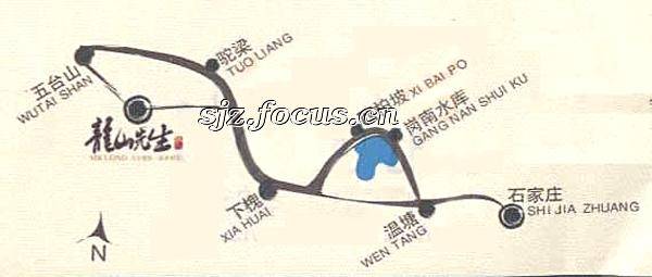 龙山先生建在九龙山风景区内,九龙山风景区位于河北省平山县北部蛟潭庄镇的腔子村附近,腔子村由于三面环山,形似口腔而得名,始建于明代。景区距石家庄市区140公里,离革命胜地西柏坡60公里,西北与山西交界,东北与驼梁、五岳寨景区相邻。   九龙山风景区地处太行山腹地,具有典型的北方山区的地理、地貌特征。这里在历史上交通不便,人迹罕至,建国后注意封山育林,很好的保持了景区的原始风貌,景区内满山苍翠,层峦叠嶂,植被覆盖达95%以上,有蕨类、裸子类和孢子类100多科,1000余种,春、夏、秋三季山花烂漫、绚丽多姿,让人留连往返。景区内还生活着野兔、山鸡、狍子 、野猪及各种鸟类近50余种,行走其中一路鸟声鸣啾,宛如天籁一般,间或有一两只松鼠或山鸡掠过煞是有趣。景区内以山石、林木和水体为主体的自然景点100余处,有古长城、龙王庙、千年“财树”等诸多古迹及关于仙人寨、仙人帽等景点的优美传说、典故。九龙山水资源极其丰富,碧水环绕于青山之间,夜宿山中潺潺水声不绝于耳,能让人忘却一身疲惫、俗世烦忧,酣然入睡。最著名当数九龙潭及白草泉,相传龙王的九个儿子在山中打闹而形成九潭大大小小的泉水,九龙潭因此而得名;百草泉流经之地生长着多种草药,长饮此水有强身健体的功效,被当地人视为“神水”。   景区内空气清新,气候宜人,犹如天然氧吧。盛夏日披薄衫夜拥被,三伏如三秋,七月平均气温只有18-19℃,比石市低8-9℃,远低于我国避暑气候平均24℃的指标,不亚于避暑胜地承德和北戴河24℃的气候。