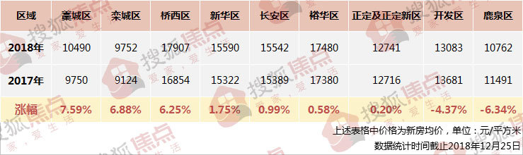 搜狐焦点通过实地调查和统计,总结出石家庄2018年房价数据,把脉楼市价格动向。
