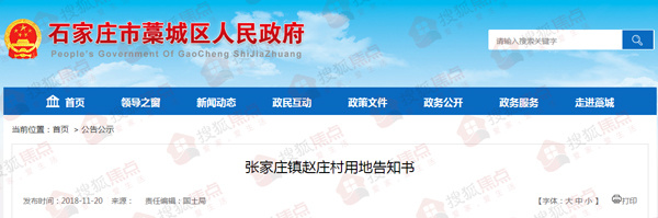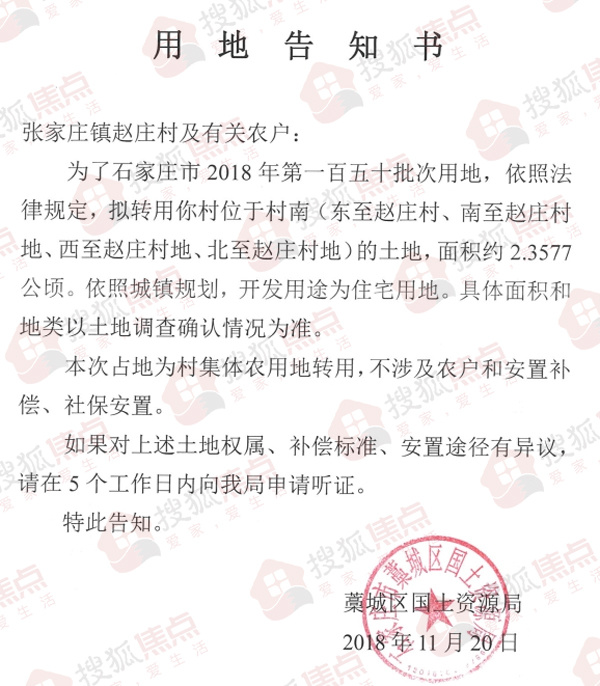 近日,搜狐焦点从藁城区人民政府网站获悉,国土局发布了一则用地告知书。