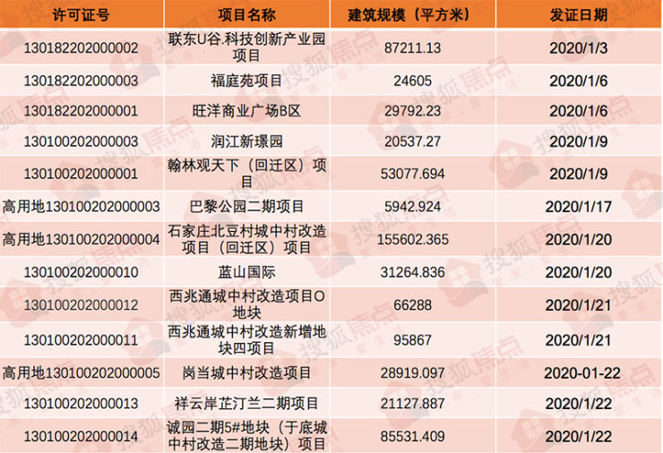 搜狐焦点根据石家庄市自然资源和规划局公布的相关数据,汇总了石家庄2020年1月获得《建设用地规划许可证》的房地产项目。