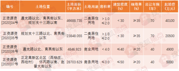 正资源资[2020]07号地块,位于正定高新区北区(西杨庄、西咬村),怀丙路以南、赵普大街以东,土地面积为28703.629平方米(约合43.06亩),用地性质为商务用地,容积率≤3.0,出让年限为40年,起始价为5000万元。