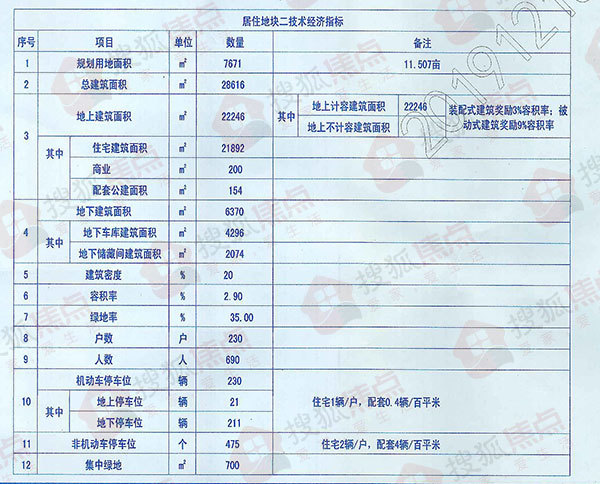 根据技术经济指标显示,居住地块二规划用地面积为11.507亩,总建筑面积为28616平方米,建筑密度为20%,容积率为2.9,绿地率为35%,户数为230户;