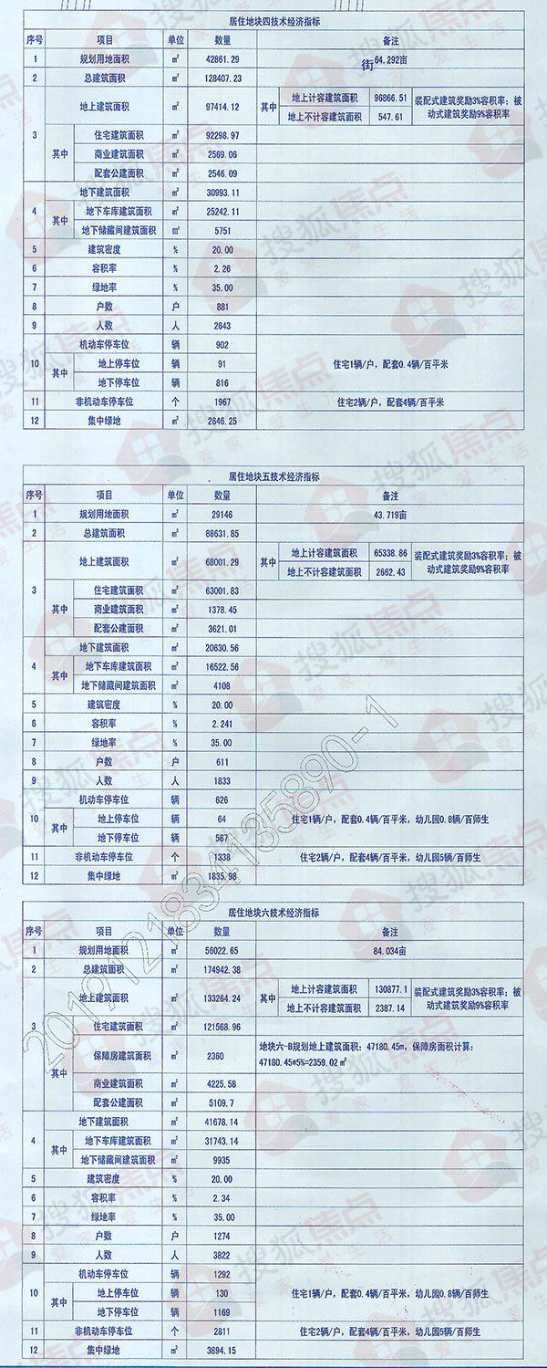 居住地块四规划用地面积为64.292亩,总建筑面积为128407.23平方米,建筑密度为20%,容积率为2.26,绿地率为35%,户数为881户;居住地块五规划用地面积为43.719亩,总建筑面积为88631.85平方米,建筑密度为20%,容积率为2.241,绿地率为35%,户数为611户,将配建6班幼儿园;居住地块六规划用地面积为84.034亩,总建筑面积为174942.38平方米,建筑密度为20%,容积率为2.34,绿地率为35%,户数为1274户,将配建9班幼儿园。