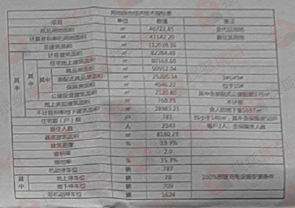 根据经济技术指标表显示,该项目总建筑面积112028.36平方米,,建筑密度19.9%,容积率2.0,绿地率35.7%,规划户数781户,规划人口2343人,机动车停车位787辆,非机动车停车位1624辆。