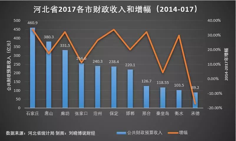 (图六:河北省2017各市财政收入和增幅(2014-2017))