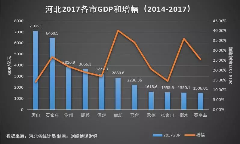 (图二:河北省2017各市GDP和增幅(2014-2017))