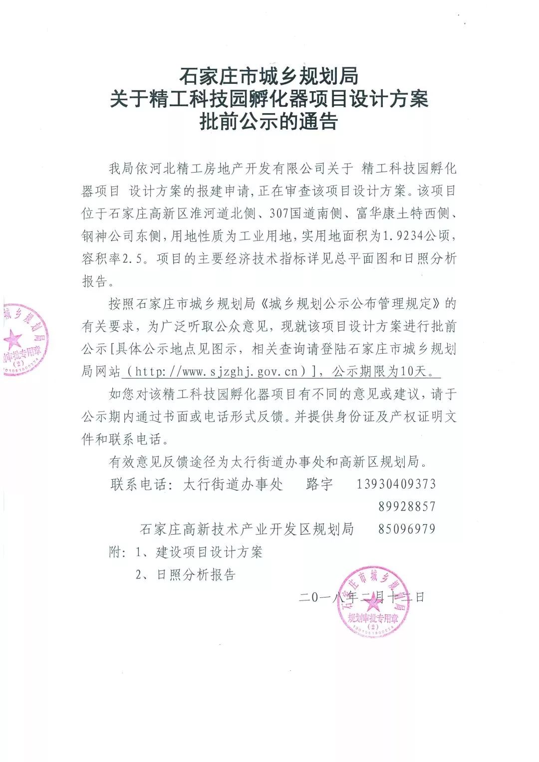 征收位置:太行大街以东,冲江路以北的土地,面积约为6.1549公顷。根据《河北省人民政府关于修订征地区片价的通知》(冀政发[2015]28号),拟征收土地位于石家庄市高新区第二区片,区片价格标准为每公顷292.5万元。安置途径为货币安置。