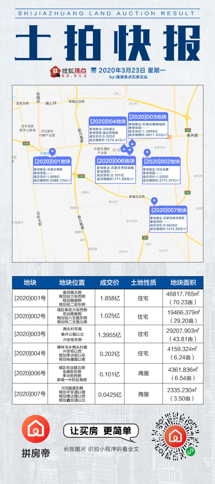 [2020]001号地由石家庄博辰房地产有限公司以18580万元竞得;