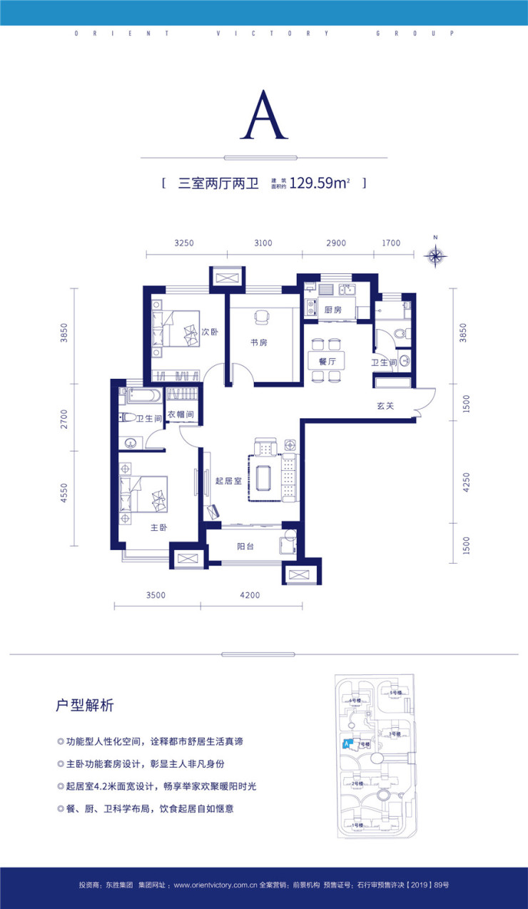 项目129.59平米三室户型