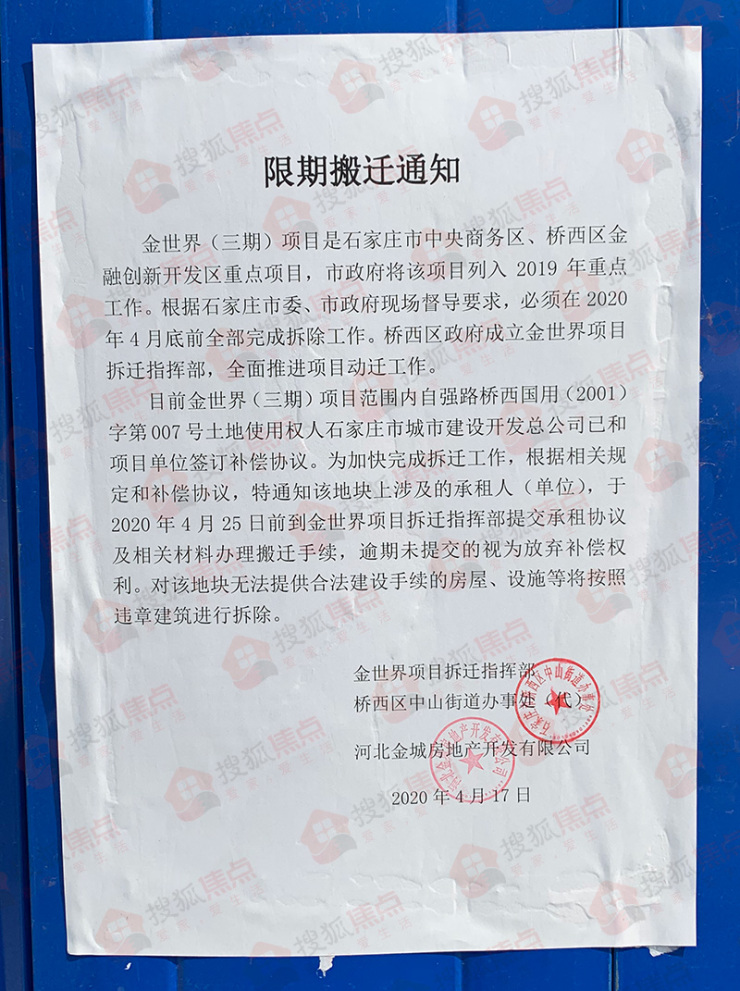 根据金世界项目拆迁指挥部张贴的“限期搬迁通知”显示,金世界(三期)项目是石家庄市中央商务区、桥西区金融创新开发区重点项目,市政府将该项目列入2019年重点工作。根据石家庄市委、市政府现场督导要求,必须在2020年4月底前全部完成拆除工作。此外,在2020年桥西区政府工作报告中,也明确提及启动金世界三期拆迁。这条承载着一代石家庄人集体回忆的老街,真的要说“再见”了。