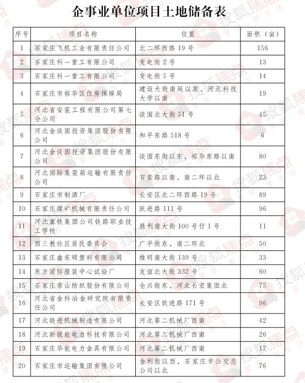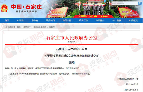 搜狐焦点获悉,石家庄市人民政府网站发布了《关于印发石家庄市2019年度土地储备计划的通知》。