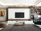 本案造型方面主要是以简洁为主,最终定位现代轻奢风格,融入业主的生活习惯,整体氛围大气,材质简单明了,没有过多过于花俏的元素。在功能方面满足生活需求,区域划分精细、全面,展示一个轻松舒适的生活环境。 电视背景墙以大理石为主元素,营造了轻奢雅致的空间氛围 放眼客厅,视野开阔,并不受限,这种家居生活更适合