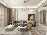 本案是一种追求简洁、清新的法式装修风格、其将传统法式中的尊贵、典雅简单化、将浪漫的气场隐藏的房子空间以内、给人一种温暖、浪漫而又颇具艺术感的感觉。 客厅以暖白为主、带有装饰的背景墙和法式风格的壁纸、家居、花纹等作为点缀、大大提升了质感的的对比效果。 打破了传统布局沉闷的格调,加强整个空间的层次感、使