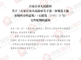 关于《石家庄市人民政府关于进一步规范土地市场秩序的意见》(石政发〔2016〕21号)文件延期的通知公开发布。