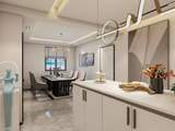 石家庄装修公司今天给大家分享的是一个平层的设计案例,餐厅和厨房是设计的开放式一体的轻奢风格,现在很多户型都是入户一旁餐厅一旁客厅,从视觉看分布的非常清晰,整体以灰色调为主轻奢风格用灰色木地板简洁不失大气,餐桌选择大理石配菱形板凳,靠窗位置做了水吧台的设计,平时做饭时跟朋友家人坐一起喝喝茶聊聊天也是一