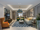 石家庄装修公司给大家分享一下这套美式风格客厅,面积在160平左右,从设计上奢华大气。阳台打通让空间变得更宽敞配暗绿色窗帘,电视背景墙用白色的护墙板加大理石两边的分层柜子可以摆放些装饰品预留出灯带增加客厅高级感效果更好,沙发背景用四个组合挂画装饰使空间不单调,浅色沙发用的是组合沙发整体感也比较强,用一