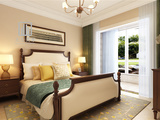 石家庄装修公司对于卧室的设计主要是以舒适度为主,下列案例是美式风格的卧室,整个色调都是暖暖的,整个空间没有过多的复杂的造型,用的家具都是有美式风格的,风格简洁,相比于法式风格家具来说,实用性比较强,线条简单流畅,床头柜也是圆木的,花纹也可以作为一种装饰。地面使用的是仿古砖,为了追求舒适感所以在床下放