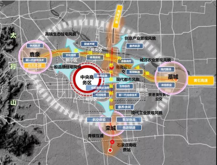 新元作为都市发展新中枢,缝合城市横向发展组团,重构各区产业布局,使得各区多元化、差异化协同发展,助力石家庄高品质发展。建议打造北段文化旅游、中段商业品质、南段装备制造区。布局低密度新型商业、现代商贸、工业设计、文化旅游、体育休闲、医疗康养、航空制造、智慧物流等业态。