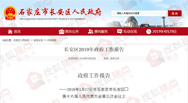 搜狐焦点“楼市快讯”报道:近日,搜狐焦点获悉,长安区人民政府于3月26日发布了《2019年长安区政府工作报告》(以下简称《报告》)。主要内容包括2018年工作回顾、2019年目标任务和重点工作以及加强政府自身建设三个方面。搜狐焦点将《报告》中涉及房地产市场、城市建设规划等方面重点内容进行了整理,如下所示: