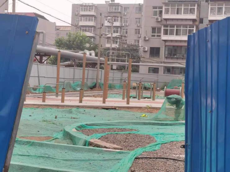 作为社区有机组成的一部分,社区活动空间与居民可谓是密不可分。在裕东小区,社区活动空间也被列入改造范畴,位于小区57号楼西侧,占地800平方米的中心小花园已被蓝色围挡圈了起来,正中央摆放着许多健身器材。据施工人员介绍,未来这里将新修建一条健身步道,为居民休闲娱乐提供了更多的便捷。