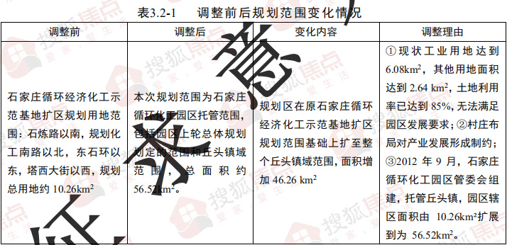 根据原石家庄循环经济化工示范基地扩区规划现状图,现状工业用地达到6. 08k²,土地利用率已达到59.3%,无法满足园区发展要求;村庄对产业发展形成制约;2012年9月,石家庄循环化工园区管委会组建,园区辖区面积由10.26平方千米扩展到为56.52平方千米。基于以上原因,为园入一定的发展空间,重新规划用地布局,重新审视产业、城镇最乡村的关系,河北石家庄循环化工园区规划建设管理局在《石家庄循环化工园区总体规划(2016━2030)》中对规划范围进行调整。