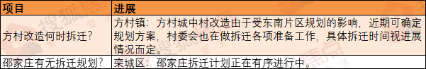 方村镇:方村城中村改造由于受东南片区规划的影响,近期可确定规划方案,村委会也在做拆迁各项准备工作,具体拆迁时间视进展情况而定。