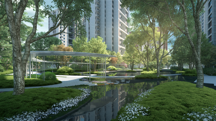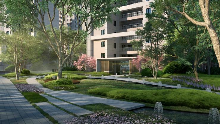 园林承袭新加坡度假生活理念,采用三重归家礼序,一重自然入庭,多元化的场景布局,让归家更具仪式感;二重水景入园,六大生活场景,兼具多重感官与功能性;三重尊崇入堂,酒店式归家大堂、精装地库大堂、私属楼宇大堂,让每次归家皆是凯旋。