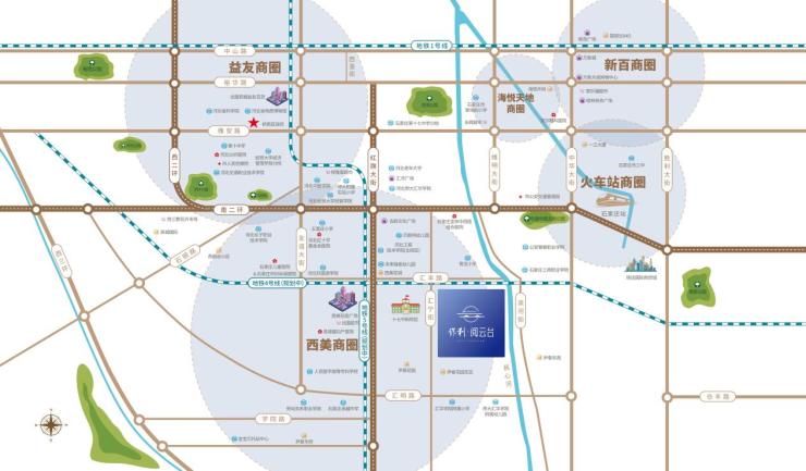 对望新火车站,由红旗大街、中华大街、槐安路、南二环等组成三横三纵动脉交织,接轨城市的每个角落。同时接驳规划中的地铁4、5号线,交通便捷程度无需多言。