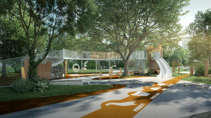 全龄化也是景观设计的一大亮点。属于年轻人的轻器械活动专区、500M悦氧健康跑道,专为老年人设计的舒缓活动场地,以及专属孩子畅玩的“彩虹云谷乐园”、嬉戏浅滩等,无论是成年人、老人还是孩子,在这里都能找到惬意的去处。