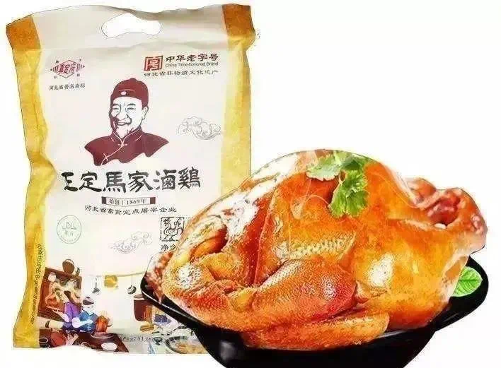 正定马家鸡,又称马家卤鸡,始创于清朝初年,是有三百余年历史的中华老字号品牌。马家卤鸡黄里透红、颜色鲜亮,鸡皮油光平展,不破皮、不脱骨、不塞牙、不腻口, 具有高蛋白、低脂肪、营养丰富、熟、烂、酥、软等特点,久食不厌,老幼皆喜。马家卤鸡经过百年传承,如今既保持了传统工艺,又自主创新了卤鸡翅、卤鸡爪、卤鸡胗等系列产品,并采用先进的灭菌及真空多层复合保鲜工艺,开发出系列软包装产品,能长期保持色、香、味、形不变,方便保存、运输和外销。