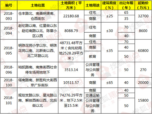 搜狐焦点“焦点地评线”报道:搜狐焦点于《石家庄日报》了解到,石家庄市公共资源交易中心发布2则《国有建设用地使用权公开出让公告》,公开出让[2018]093、094号地块以及[2018]095、096、100、101号地块土地使用权。挂牌时间均为2019年1月2日9时至2019年1月15日14时30分,挂牌地点为石家庄市公共资源交易中心四楼拍卖厅(槐安东路163号)。