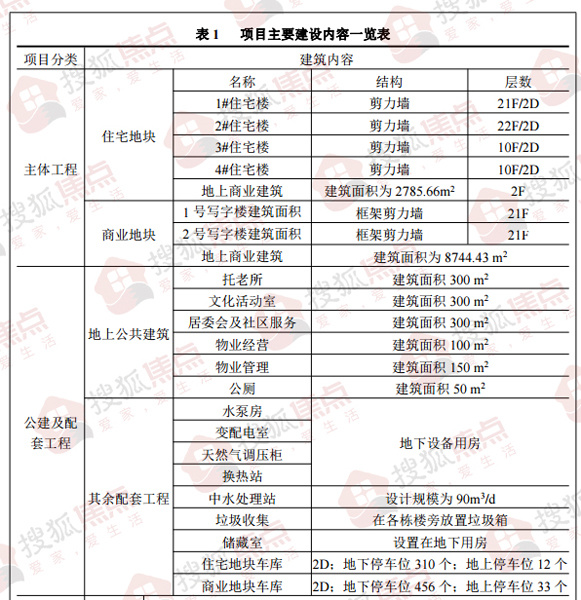 具体来看,该项目主体工程为住宅及商业地块。其中住宅地块:实用地面积 17646平方米,总建筑面积 51621.78平方米,其中住宅建筑面积 33067.34平方米,包括2栋高层住宅楼、2栋小高层住宅楼;公共建筑面积 1200平方米, 包括居委会及社区服务用房、文化活动室、托老所、物业管理用房等;沿街商业建筑面积 2785.66 平方米;地下建筑面积 14568.78平方米,容积率 2.10,绿地率 35.00%, 并配套建设供水、供电、污水处理、排水等辅助设施。 商业地块:实用地面积 15686平方米,总建筑面积 88854.37平方米,其中包括1号写字楼建筑面积26087平方米,2号写字楼建筑面积 26187平方米,商业建筑面积 8744.43 平方米;地下车库建筑面积 27835.94平方米,容积率 3.89,绿地率 25.00%,并配套建设供水、 供电、污水处理、排水等辅助设施。