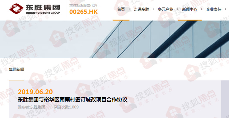 《南栗社区城中村改造启动拆迁公告》中明确提到,南栗改造与东胜集团签订城中村改造合作协议。实际上,在公告发布的4个月前,东胜集团官网就发布了一则题为《东胜集团与裕华区南栗村签订城改项目合作协议》的新闻。