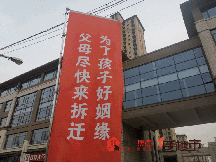 乘坐106路公交车在南栗东站下车,跨过民心河桥就来到南栗村口。搜狐焦点发现,桥头处已有书写“全民一心,共同开展南栗城中村改造工作”的宣传标语,在村口处竖有“南栗社区城中村拆迁区域”的蓝色明示牌,走进城中村,道路两侧尽是“城市让百姓更幸福,改造让生活更美好”等各种鼓励拆迁改造的标语道旗。