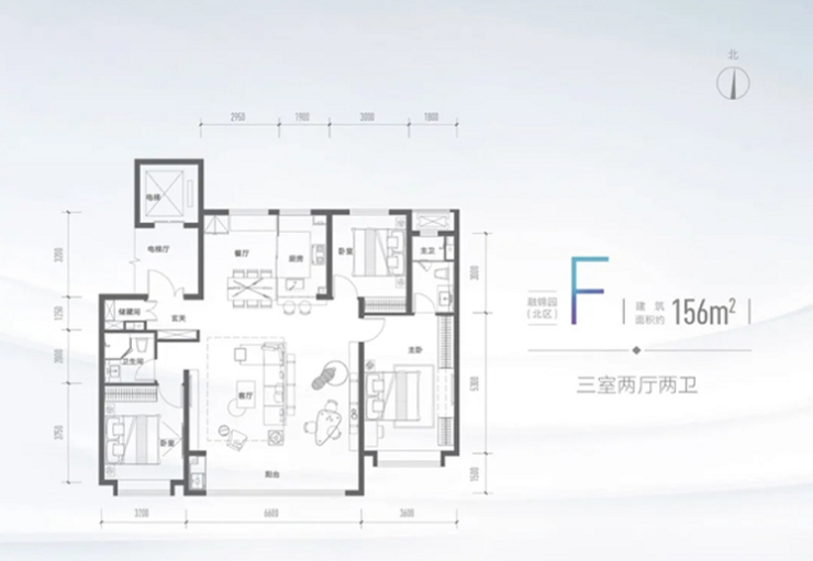 融创未来中心156㎡三室两厅两卫户型