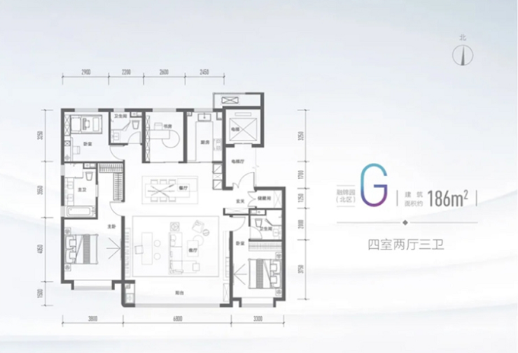 融创未来中心186㎡四室两厅三卫户型
