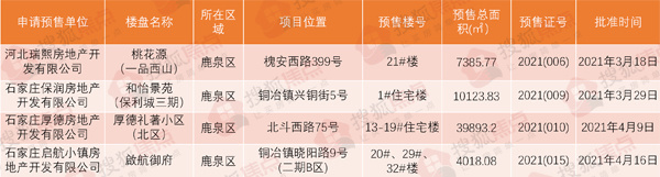 证件速递 | 鹿泉区4大项目新获预售证 涉及保利、厚德等
