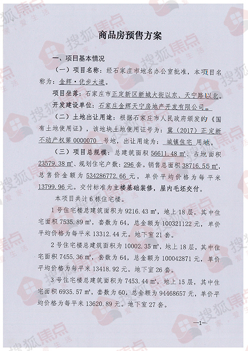 近日,搜狐焦点获悉正定新区官网上于3月22日发布了一则公告,公告显示:“金辉优步大道”项目预售方案及价格明细表,经新区管委会批准通过,现在正定新区官方网站予以公开。请广大购房群众购买前进行查阅。