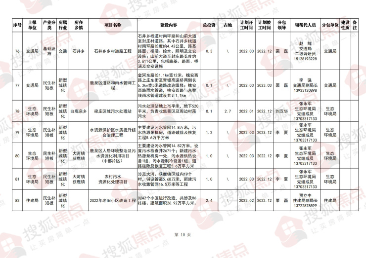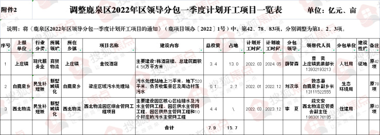 鹿泉区政府网站发布了关于2022年区领导分包一季度计划开工项目的通知。