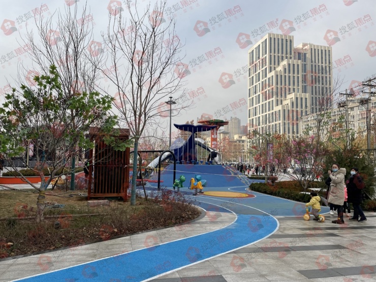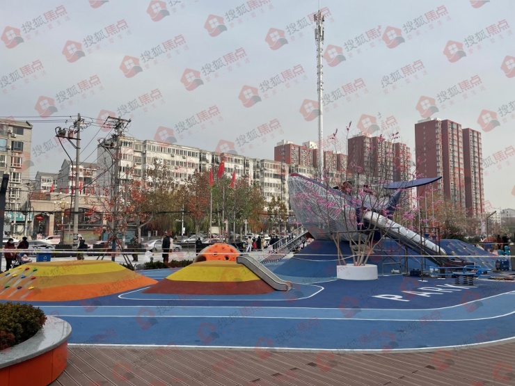 商场门前建有一个大型儿童游乐场,还有塑胶跑道,颜值非常高,吸引了附近不少居民前来游玩。
