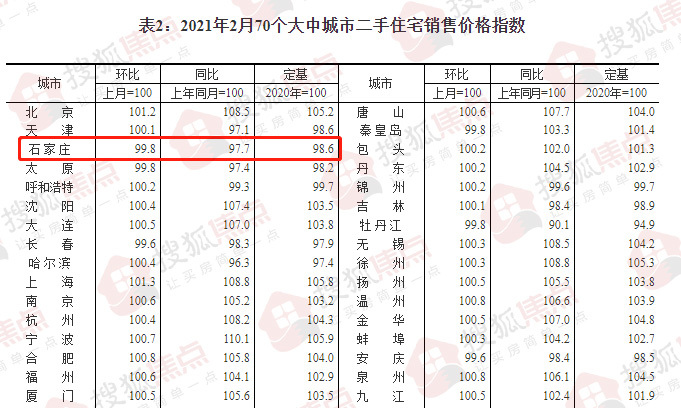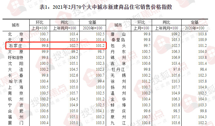 搜狐焦点“楼市快讯”报道:3月15日,国家统计局公布《2021年2月份70个大中城市住宅销售价格变动情况》,对15个一线和热点二线城市新建商品住宅价格变动进行对比,并公布2021年2月70个大中城市新建住宅价格指数。