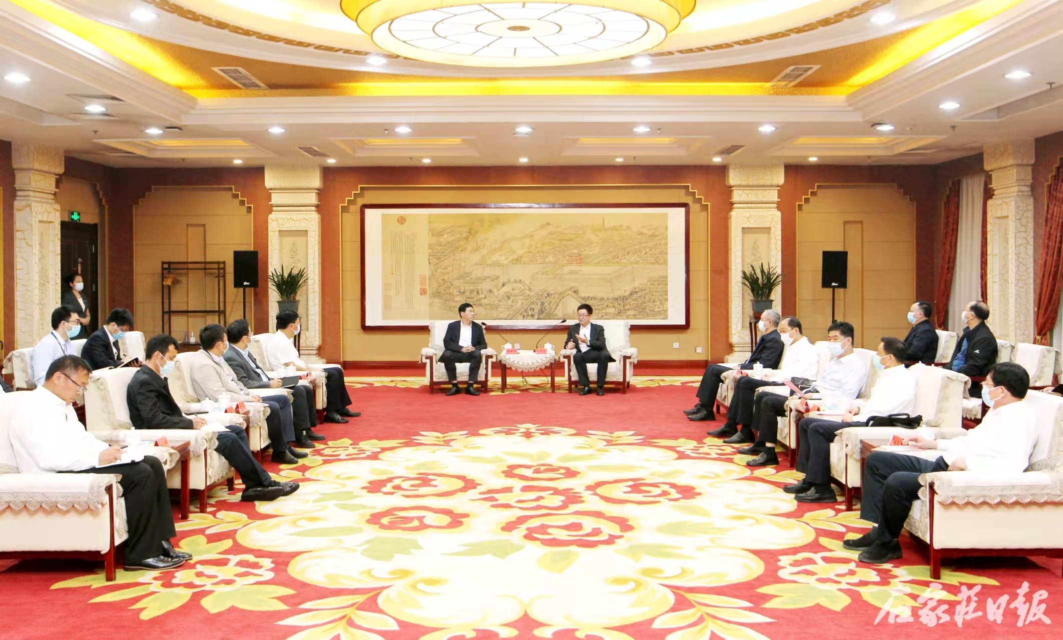 马宇骏对裴岷山一行到访表示欢迎,并简要介绍了石家庄市经济发展情况。他说,当前,石家庄正站在新的历史起点。京津冀协同发展、“一带一路”、雄安新区规划建设,为我市加快发展提供了少有的战略支撑。省委、省政府举全省之力支持省会建设和高质量发展,为我市实现跨越赶超注入了强大动力。市第十一次党代会描绘了省会未来五年发展的宏伟蓝图,为我市实现奋斗目标指明了前进方向、提供了根本遵循。我们将在新一代电子信息、生物医药两大产业率先突破,打造5个千亿级产业集群;深入推进城市更新行动,在二环内做“减法”,在二环外做“乘法”,加快建设现代化、国际化美丽省会城市,当好新时代全面建设现代化经济强省、美丽河北的排头兵和领头雁。希望中交集团充分发挥自身资金、技术、设计、施工、经营、管理优势,与我市展开广泛合作。石家庄市将认真落实与中交集团签订的战略合作协议,不断助推城市能级提升,促进双方共同发展,实现互利共赢。
