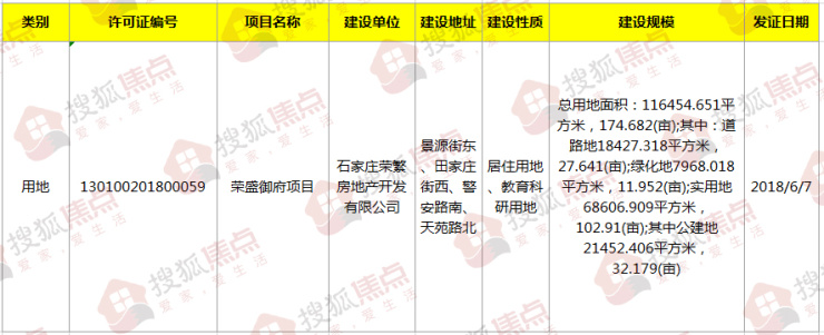 6月8日消息,搜狐焦点从石家庄市城乡规划局获悉,荣盛御府项目获得了用地规划许可证。