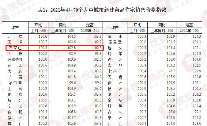 搜狐焦点“楼市快讯”报道:5月17日,国家统计局公布《2021年4月份70个大中城市住宅销售价格变动情况》,对15个一线和热点二线城市新建商品住宅价格变动进行对比,并公布2021年4月70个大中城市新建住宅价格指数。
