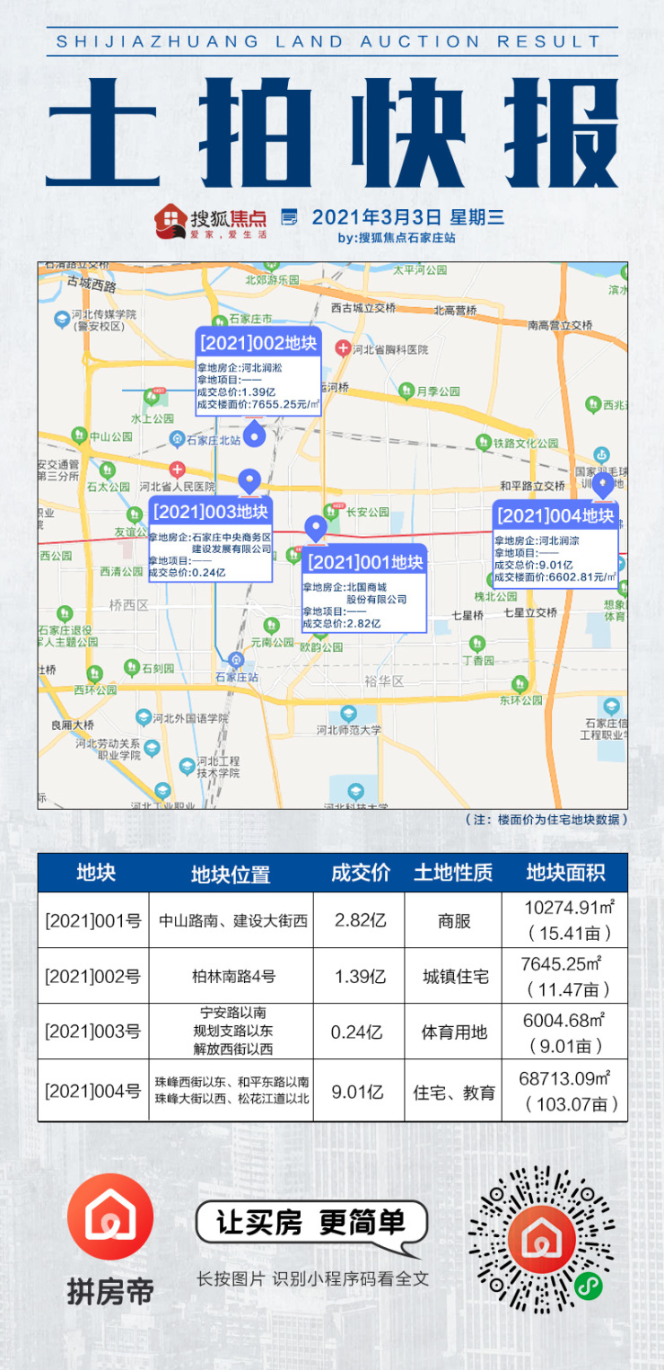 [2021]003号地由石家庄中央商务区建设发展有限公司以0.24亿元竞得;
