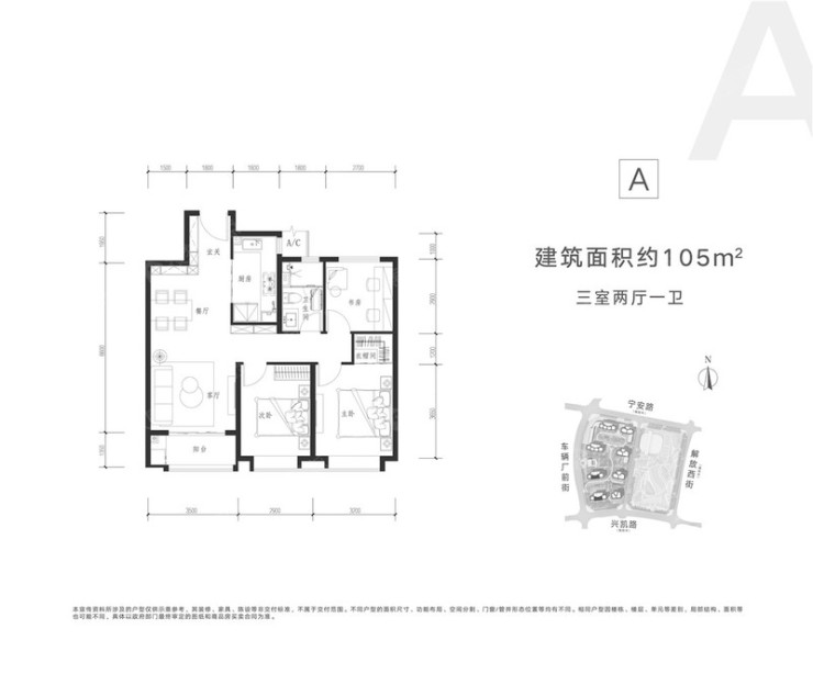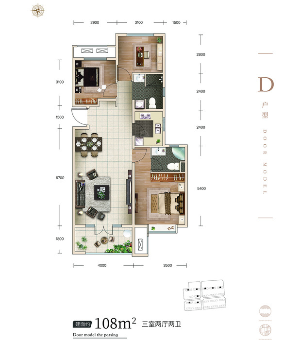 力高悦麓兰庭建筑面积约108㎡三室两厅两卫户型图