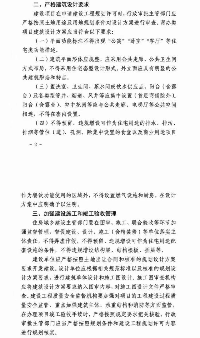 2. 商办类项目建筑设计方案平面功能标注不得出现“公寓”“卧室”“客厅”等住宅类功能描述,不得采用住宅套型设计形式;