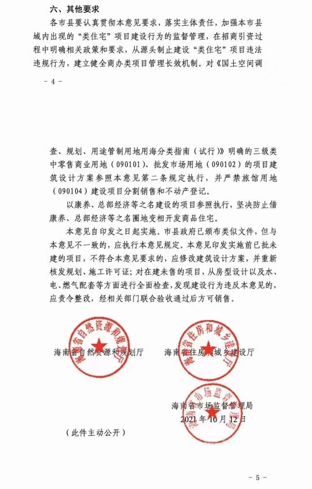 10月12日,为加强海南省商业服务业用地及混合用地上建设的商业、办公类建设项目管理,遏制将项目变相改造为具备长期居住功能的“类住宅”建筑的行为,切实发挥公共设施基本功能,维护健康有序的房地产市场秩序,海南省自然资源和规划厅、海南省住房和城乡建设厅、海南省市场监督管理局联合发布了《关于加强商业、 办公